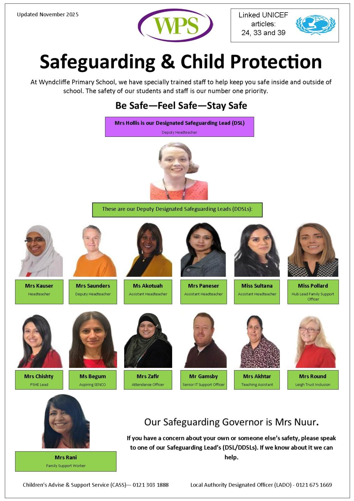 Here is the link to the statutory guidance ‘Keeping Children Safe in Education 2025’. All staff who work at Wyndcliffe Primary School are trained in this guidance and have regular safeguarding updates.